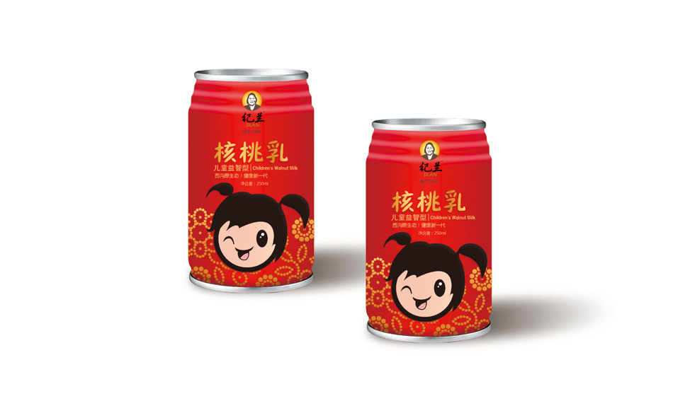 兒童核桃乳主要突出健腦益智,促進身體發育生長,紀蘭關愛兒童,關心下一代成長的愛心,突出出產品和品牌的內在聯系。